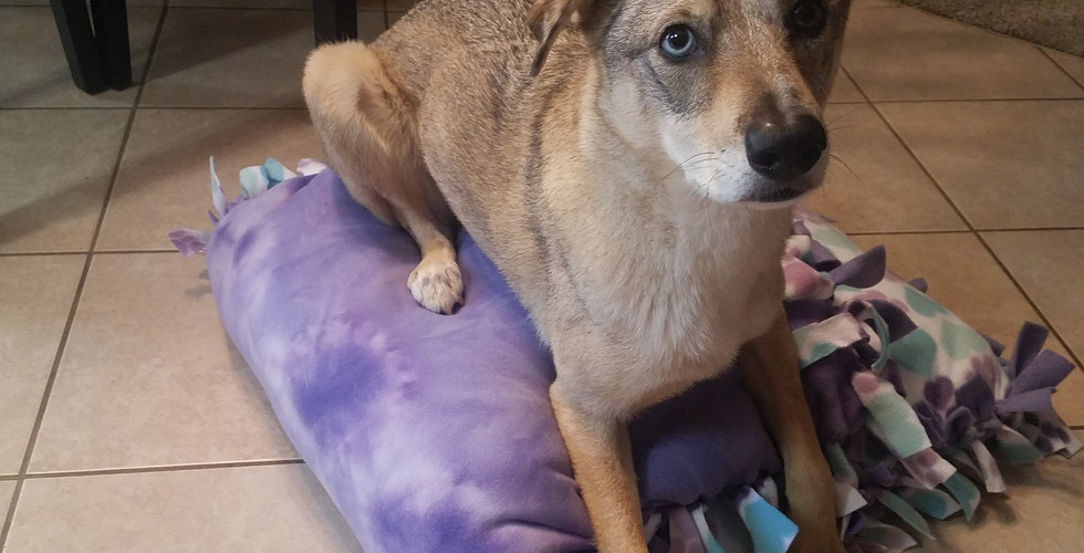 I have also added some pictures of her beds (she has many) that Maddie made for her. Maddie used old pillows and got cloth/fabric to make the beds. Sadie has taken over the guest bed and our living room chair as well. We also have customized the car setup. Sadie used to be very scared of the car and would shake. With an old love seat cushion, on top of a bridge, she is sturdy and loves the car now. Maddie also makes homemade treats for Sadie using simple organic ingredients. One of Sadies favorites is made with peanut butter, coconut oil, and banana, and is formed with silicone molds.